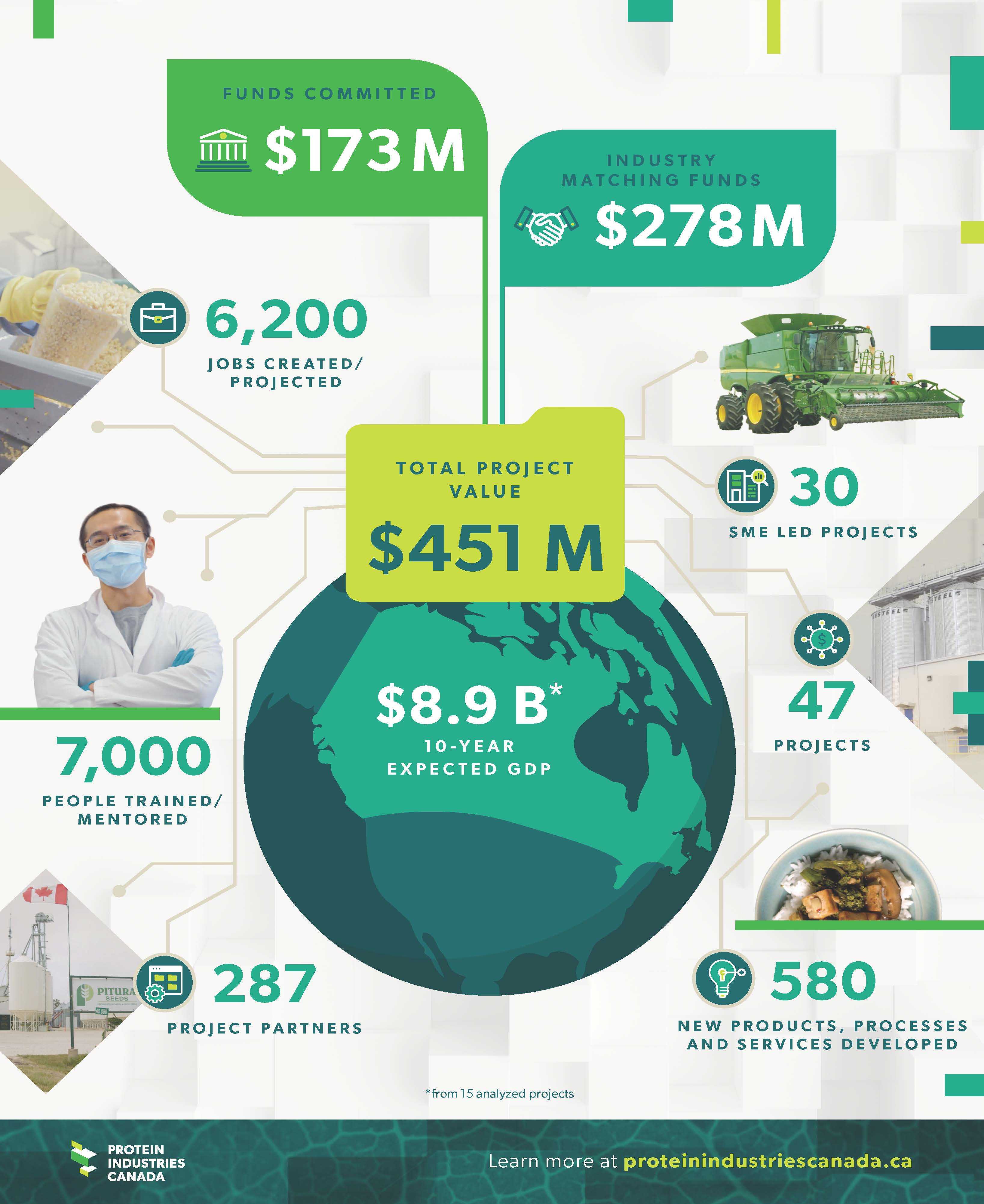 Cette année, nous avons annoncé 10 projets dans le cadre de notre programme technologique et cinq dans le cadre de notre programme de renforcement des capacités. Nos partenaires aspirent à plus d'innovation en matière de protéines végétales et à la croissance du secteur à travers leurs projets collaboratifs. Nous sommes fiers et reconnaissants de travailler avec des organisations incroyables et intelligentes qui accélèrent la croissance de l'écosystème canadien des aliments, des aliments pour animaux et des ingrédients à base de plantes.
