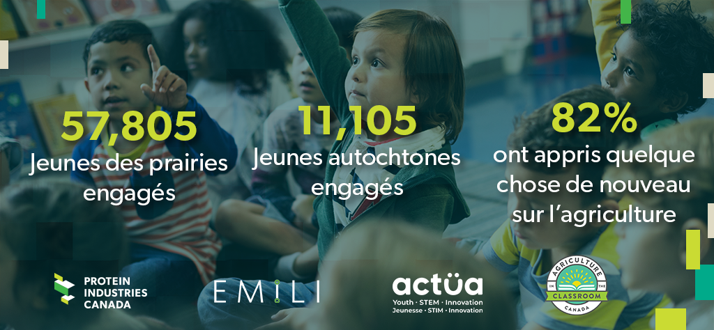 Avec près de 58 000 jeunes engagés, dont plus de 11 000 jeunes autochtones, l’Enterprise Machine Intelligence & Learning Initiative (EMILI), Actua et Agriculture in the Classroom Canada (AITC-C) ont dépassé leurs objectifs pour les deux premières années du projet d’initier 69 000 jeunes aux secteurs des protéines végétales, de l’agroalimentaire et de l’agriculture numérique en trois ans.