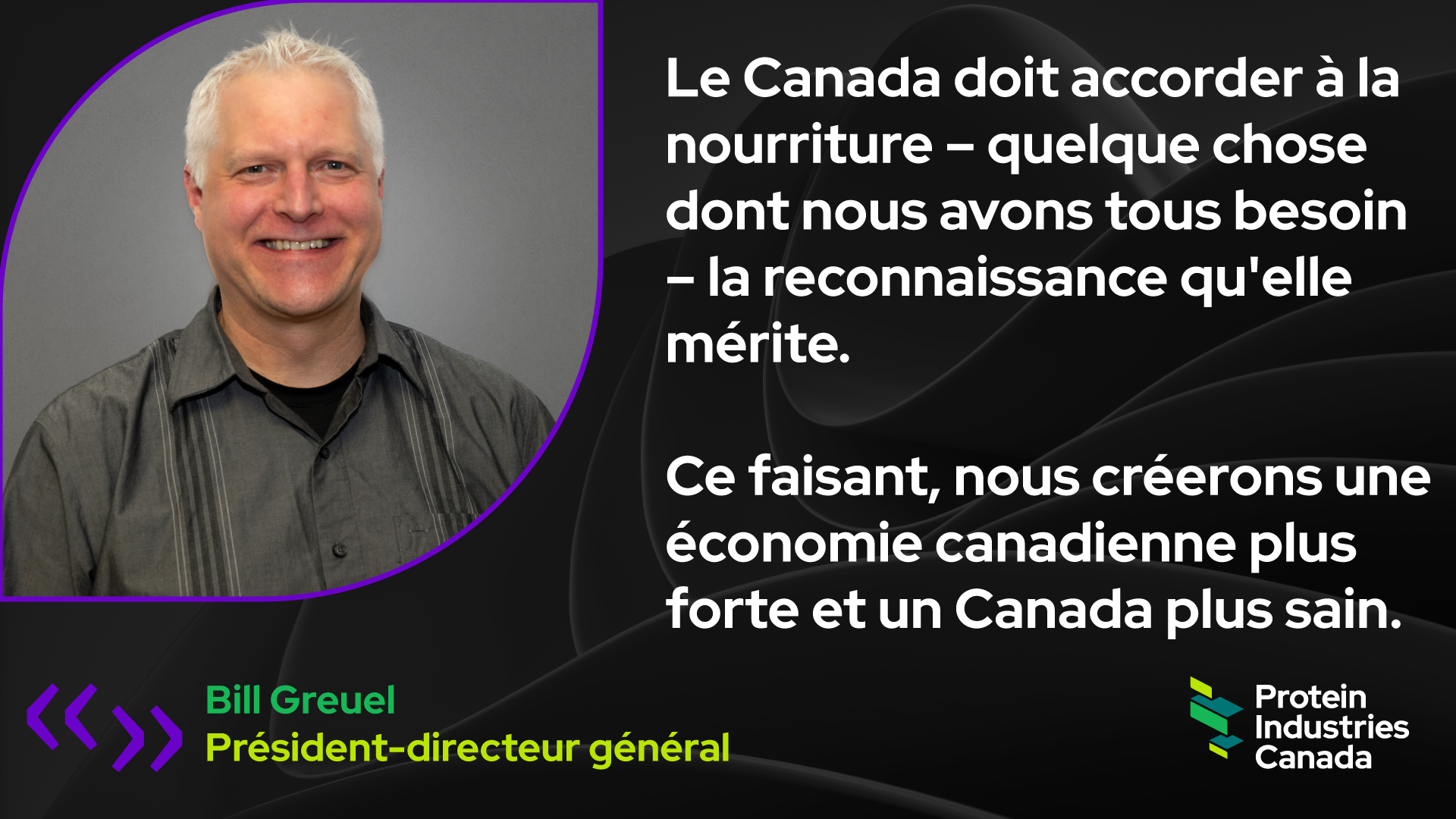 Chez Protein Industries Canada, nous sommes convaincus qu'il s'agit d'une occasion unique pour le Canada. Nous avons la chance de sécuriser les chaînes d'approvisionnement mondiales avec le Canada comme point d'ancrage. Les entreprises du monde entier recherchent des endroits pour construire leurs usines de transformation d'ingrédients - des milliards d'investissements en capital. Le Canada peut être en tête de liste.