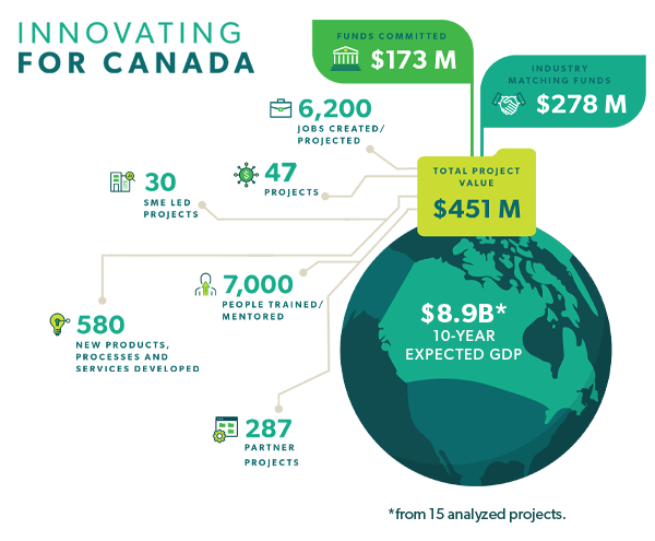Ce qui m’amène à mon deuxième point, à savoir que Protein Industries Canada, dans le cadre de l’initiative des supergrappes d’innovation, a réussi. Certes, ce n’est peut-être pas très canadien de se vanter de son succès, mais je crois important que l’on reconnaisse une initiative qui atteint son but. Lorsque Protein Industries Canada a été créée, le gouvernement fédéral nous a confié 153 millions de dollars à co-investir avec des entreprises canadiennes afin de réduire les risques liés à la R&D innovante. Nous avions pour objectif de mobiliser un investissement privé à hauteur des sommes investies par le gouvernement. En retour, nos investissements devaient mener à de nouveaux brevets de propriété intellectuelle, à la création de 5 000 emplois, et à une contribution à hauteur de 4,5 milliards de dollars au PIB.
