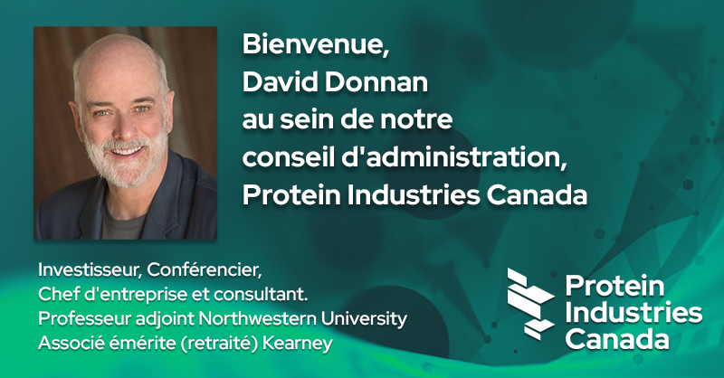 Le 14 septembre 2022, à l’occasion de son assemblée générale annuelle, Protein Industries Canada a accueilli David Donnan au sein du conseil d’administration de l’organisation.