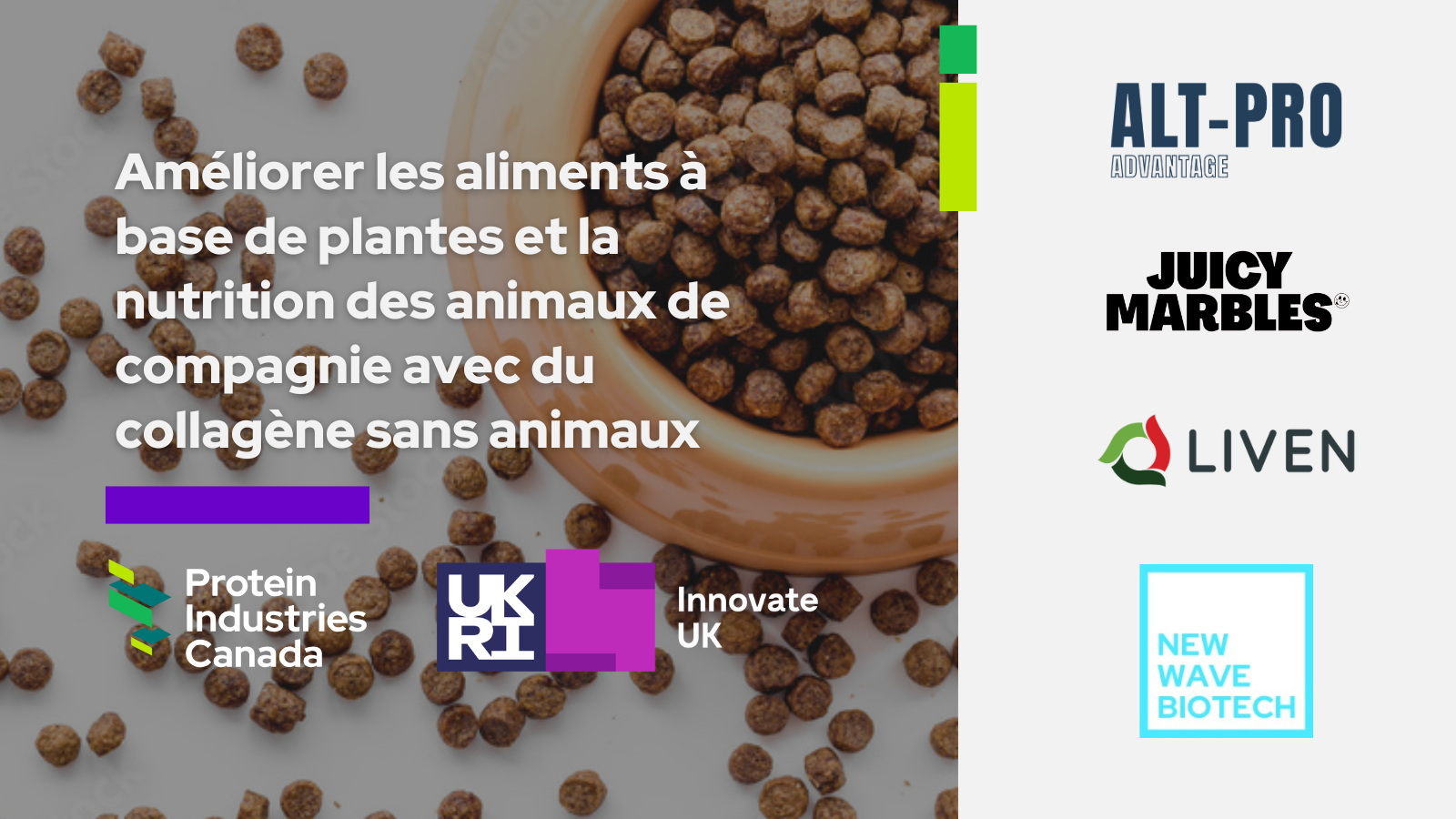 Liven et ALT-PRO Advantage s'associent à deux innovateurs de marques britanniques à base de plantes, Formidable Foods Ltd. (via sa marque Juicy Marbles) et New Wave Biotech Ltd. pour fournir des solutions d'ingrédients visant à améliorer les analogues de viande à base de plantes et la nutrition des animaux de compagnie.