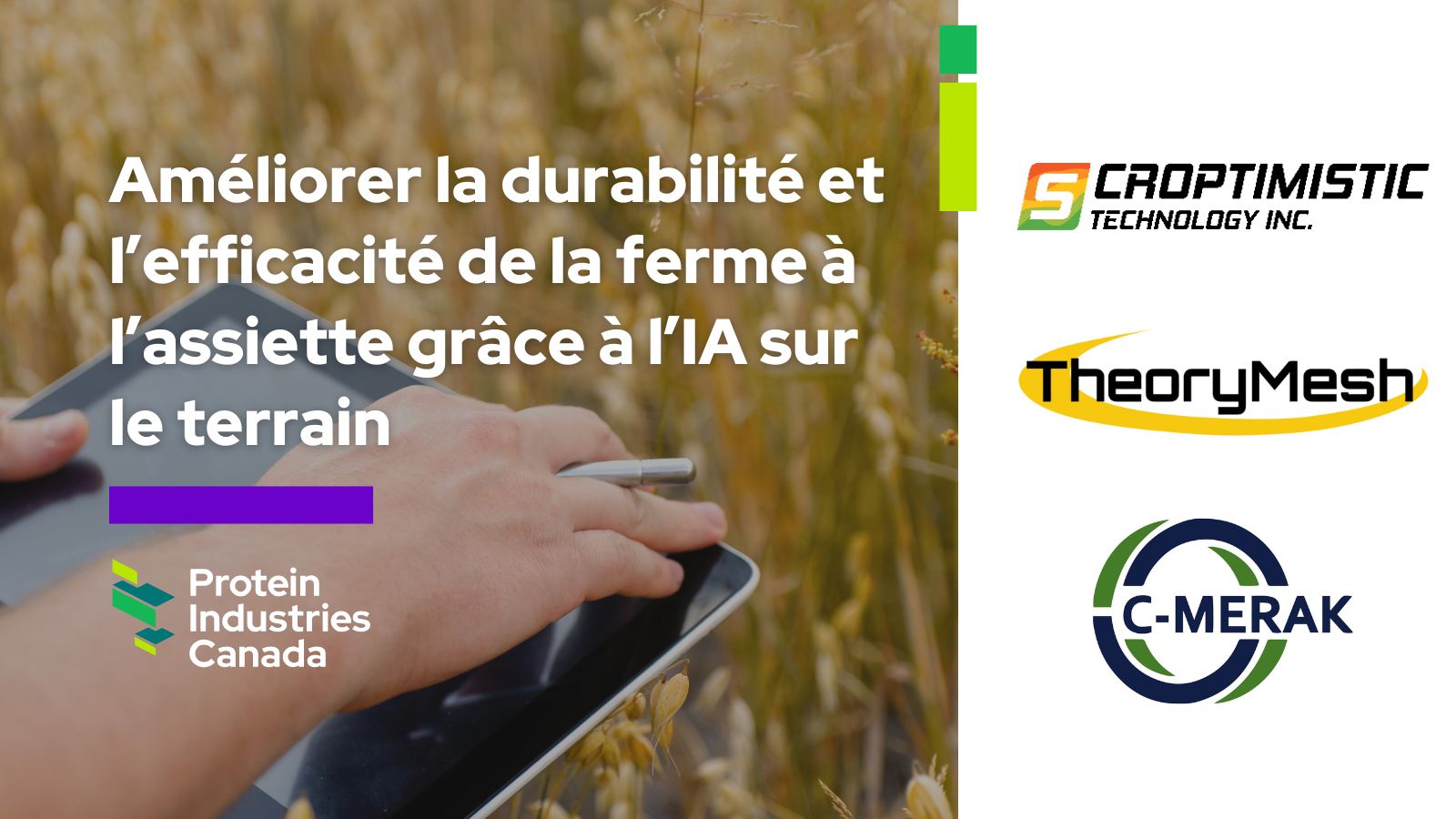 Croptimistic, TheoryMesh et C-Merak développeront et utiliseront des technologies intégrées à l'IA pour collecter systématiquement des données au niveau des sous-champs et des pratiques de gestion auprès des producteurs.