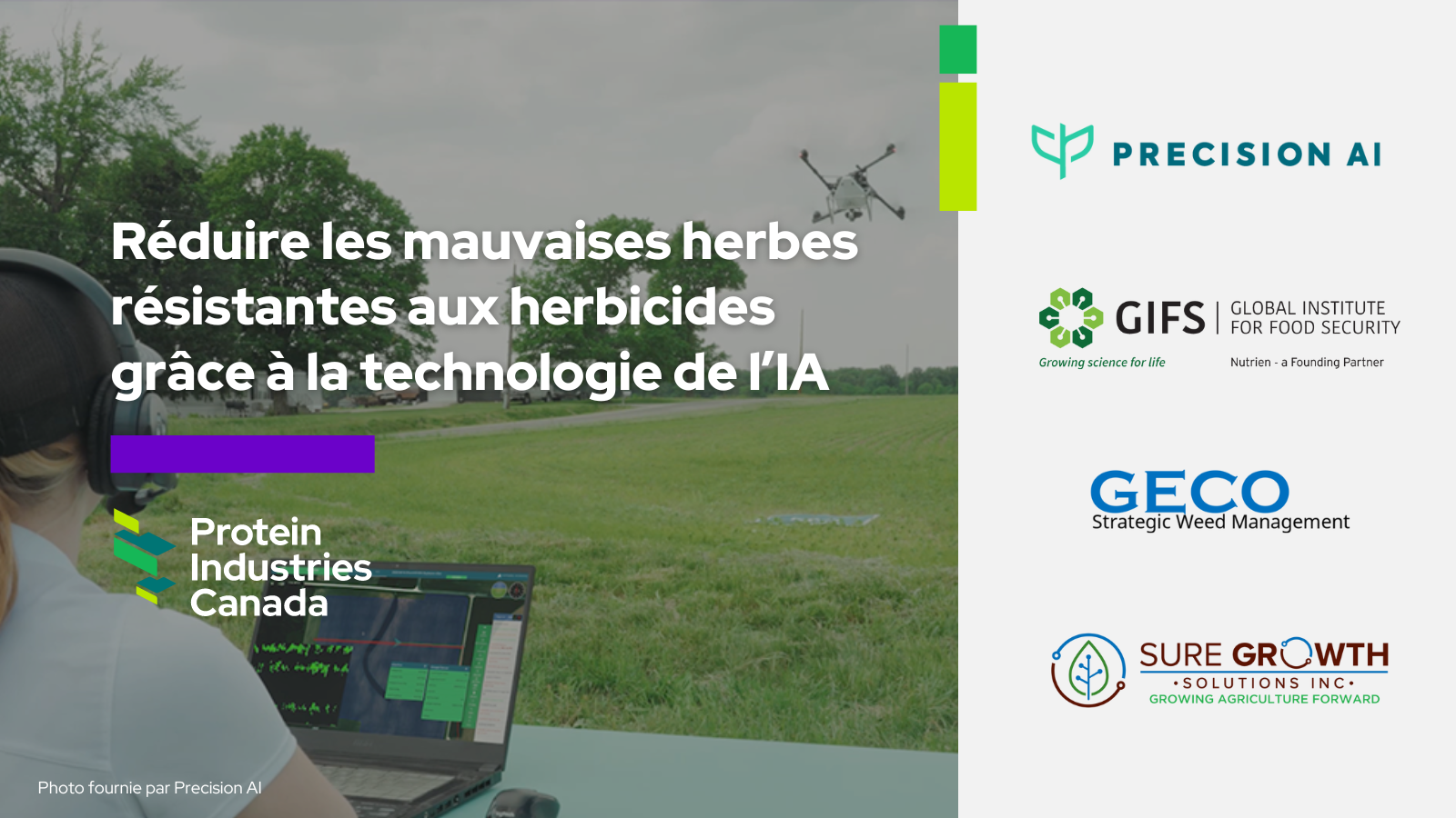 S'appuyant sur la technologie développée dans le cadre d'un projet dirigé par Precision AI dans le cadre de la première ronde de financement de Protein Industries Canada, les partenaires y ajouteront une nouvelle application logicielle qui utilise l'imagerie par drone et satellite pour examiner chaque mauvaise herbe sur le terrain avec une précision au niveau de la plante, tirer parti des techniques avancées d’IA pour fournir des alertes opportunes aux agriculteurs sur les problèmes potentiels de résistance.