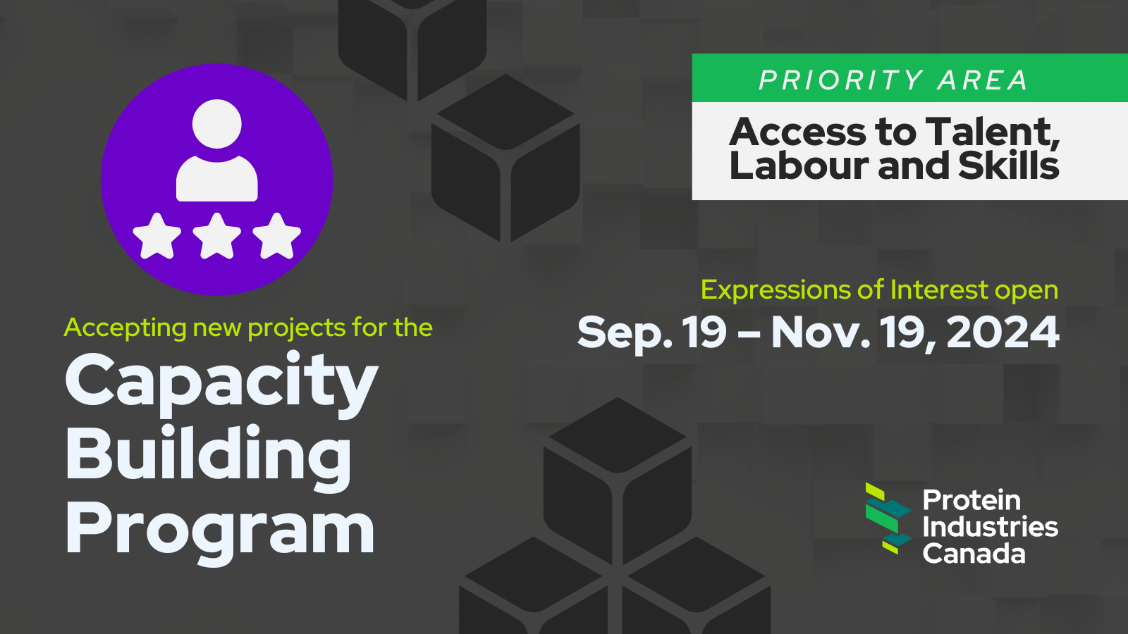 As Canada approaches its $25 billion potential in the ingredient manufacturing, food processing and bioproducts sector, an increased need for access to skills and talent among growing companies is emerging. To help address this gap, Protein Industries Canada is launching a new call for projects under its Capacity Building programming stream.