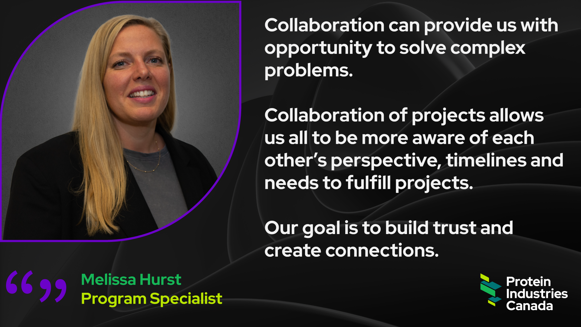 “Collaboration can provide us with opportunity to solve complex problems,” Protein Industries Canada Program Specialist Melissa Hurst said. “Collaboration of projects allows us all to be more aware of each other’s perspective, timelines and needs to fulfill projects. Our goal is to build trust and create connections.”