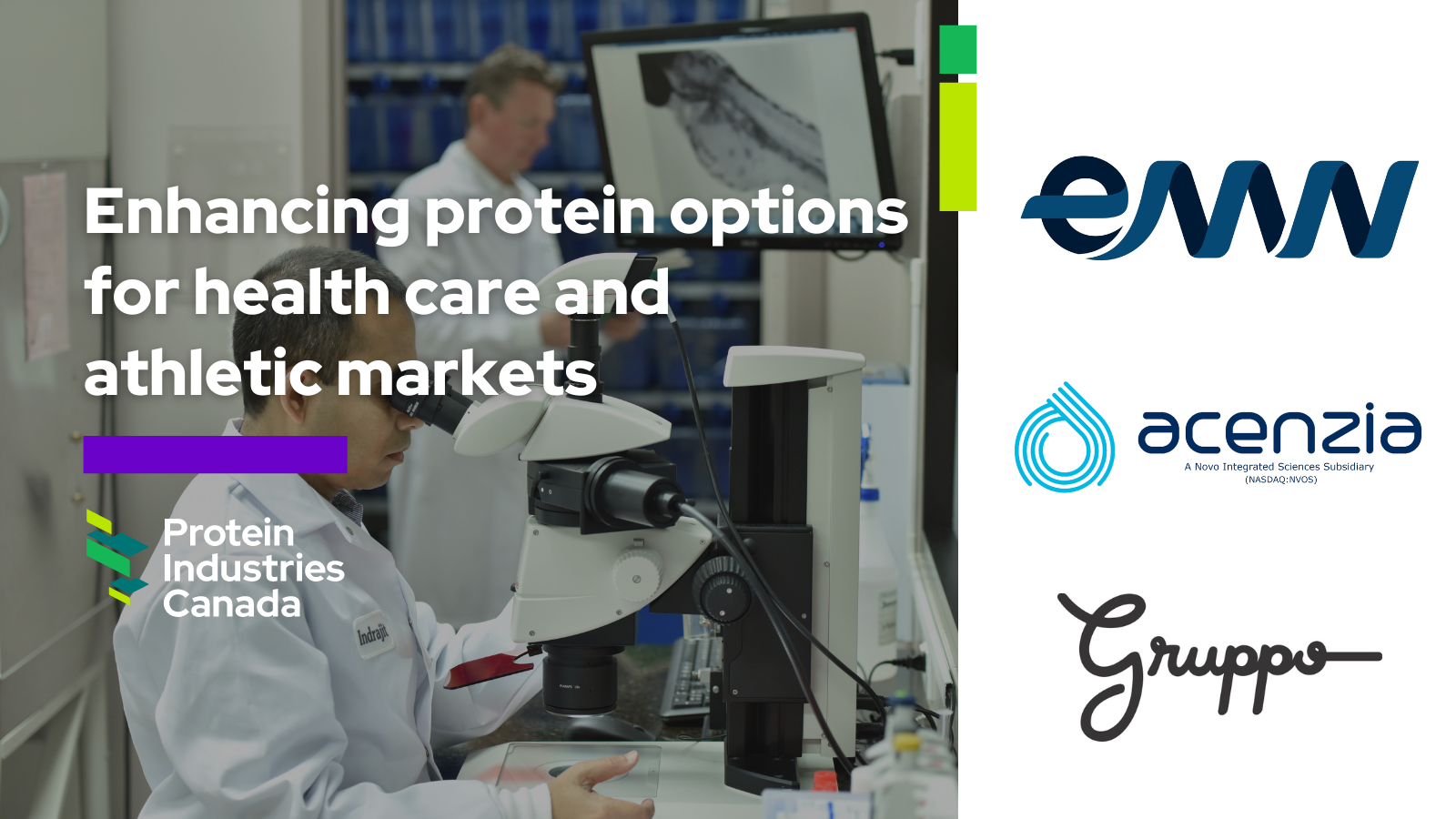 Building from EMN and Gruppo Nutrition’s previous project of creating the original ingredient blend, this project will reformulate the blend using new inputs of yellow pea and canola protein isolates, while also researching other potential protein isolate options, such as hemp and sunflower. EMN and Gruppo Nutrition will collaborate with Acenzia to optimize manufacturing processes, to expand their consumer-ready products within current and new markets. This commercial scaling will allow for a larger return on investment for the consortium, product end-users and the sector.