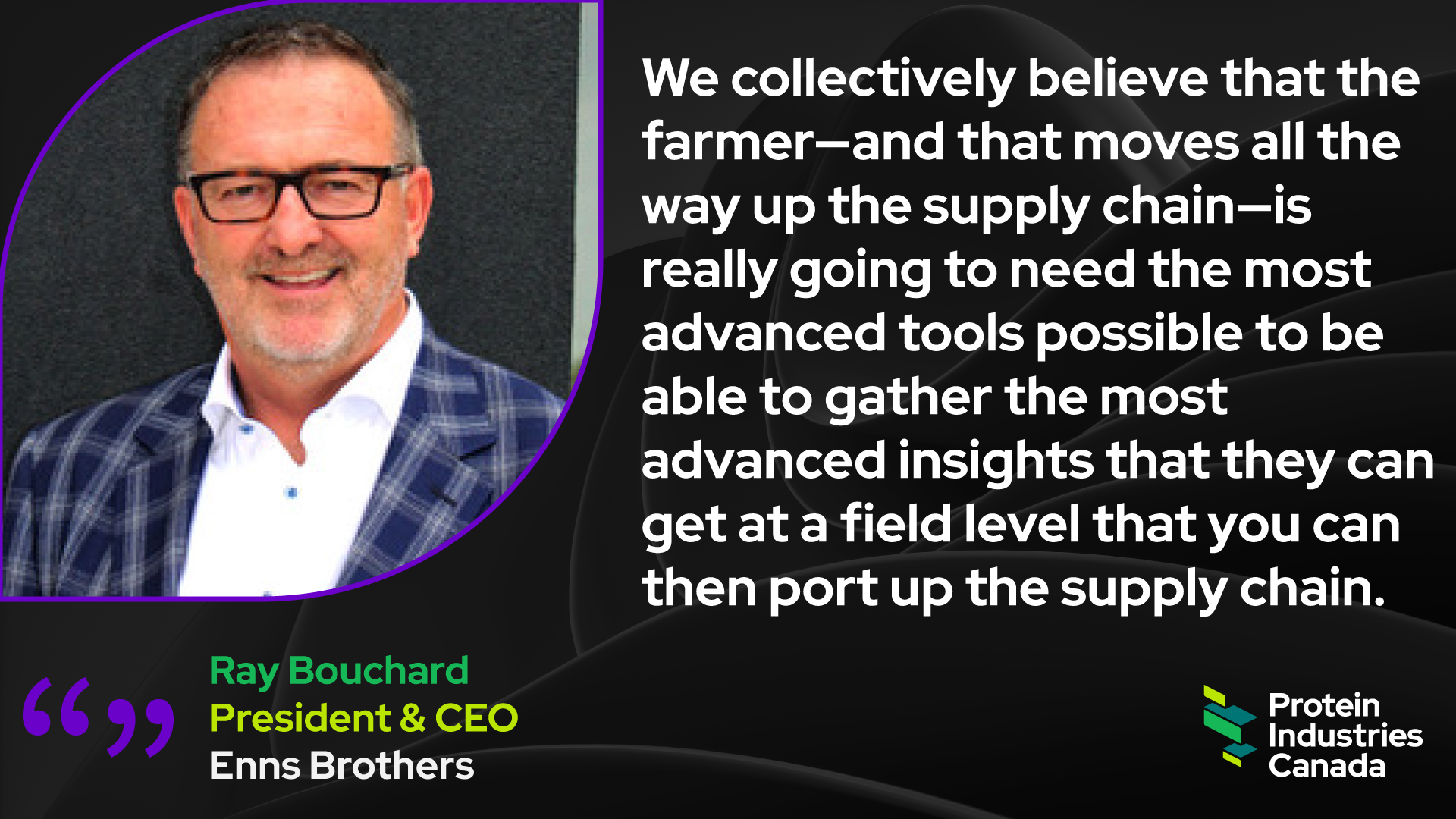 “We collectively believe that the farmer—and that moves all the way up the supply chain—is really going to need the most advanced tools possible to be able to gather the most advanced insights that they can get at a field level that you can then port up the supply chain,” Enns Brothers President and CEO Ray Bouchard said. “Those kinds of insights, down the road, we believe will be critically important to be able to be transparent, because the consumers are going to be looking for that kind of information.”